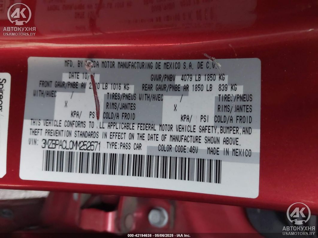 - VIN3MZBPACL0MM252671