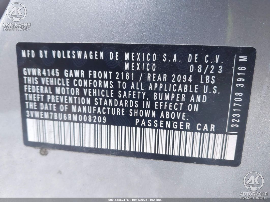 - VIN3VWEM7BU6RM008209