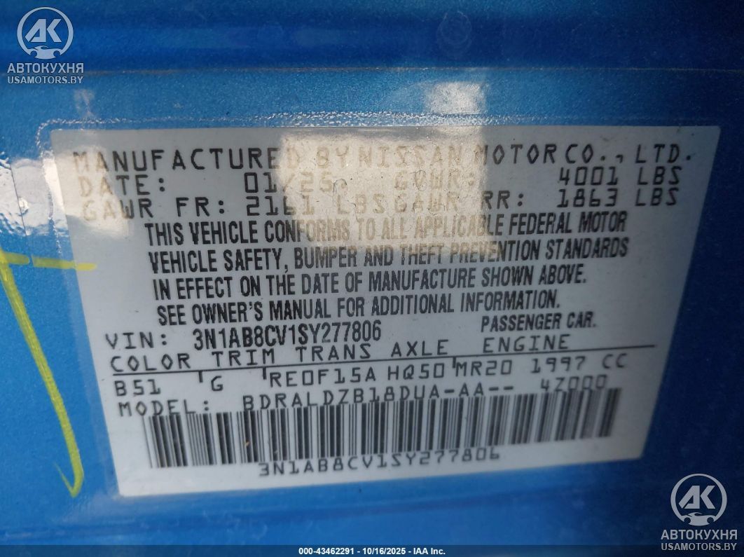 - VIN3N1AB8CV1SY277806