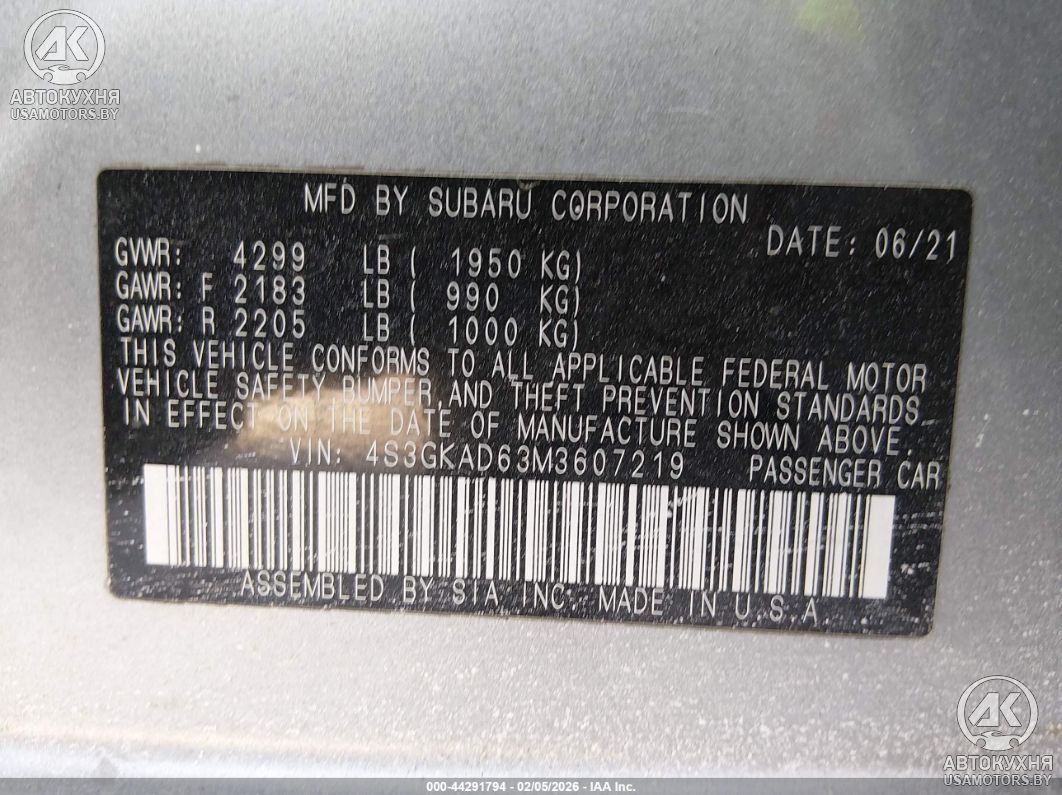 - VIN4S3GKAD63M3607219