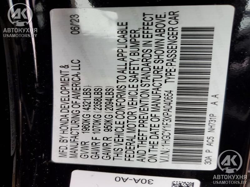 - VIN1HGCY1F3XPA******