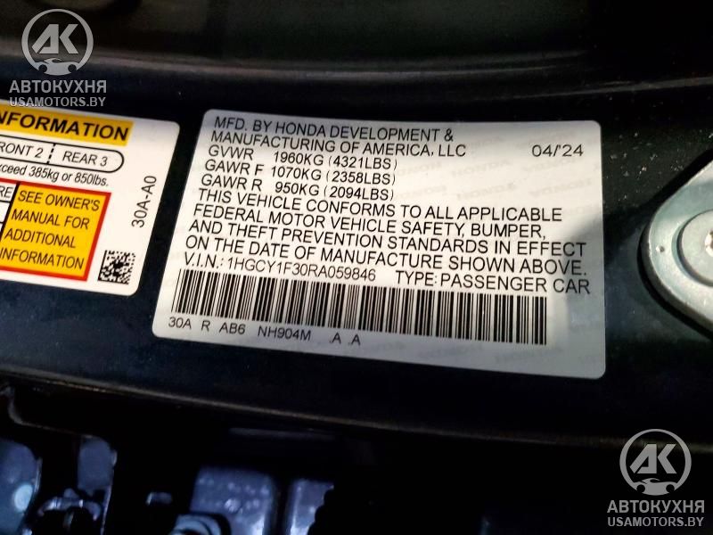 - VIN1HGCY1F30RA******