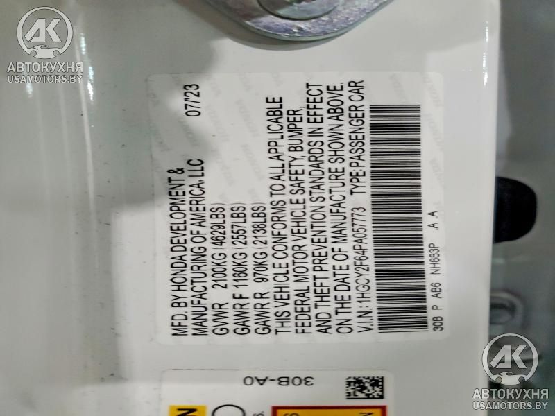 - VIN1HGCY2F64PA******