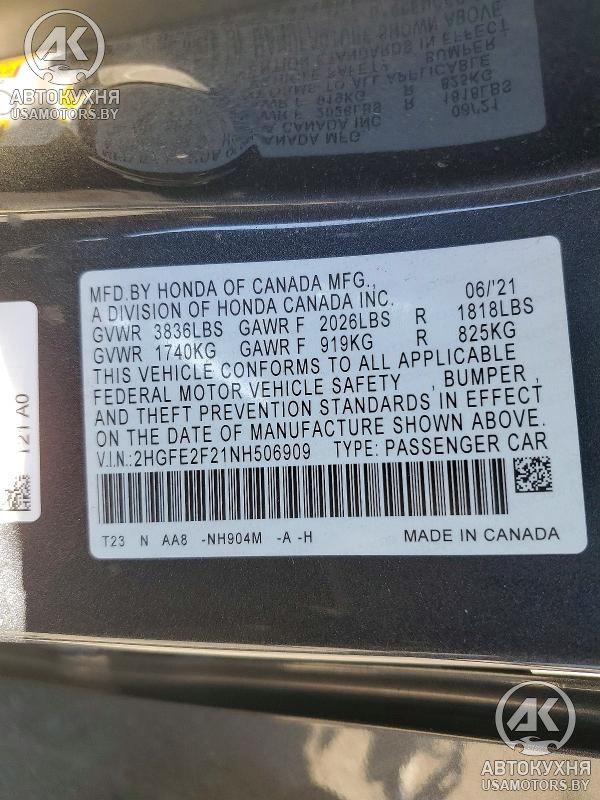 - VIN2HGFE2F21NH******