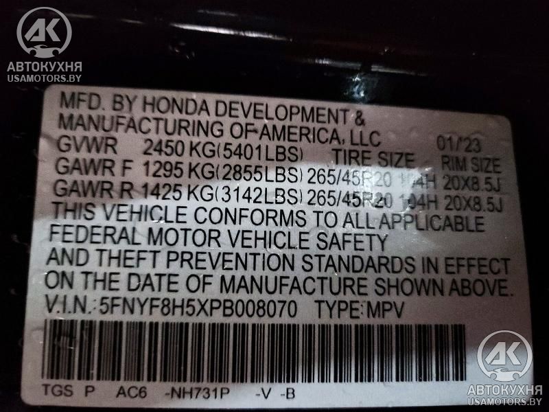 - VIN5FNYF8H5XPB******