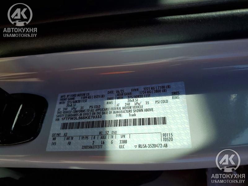 - VIN1FTFW3L56SK******
