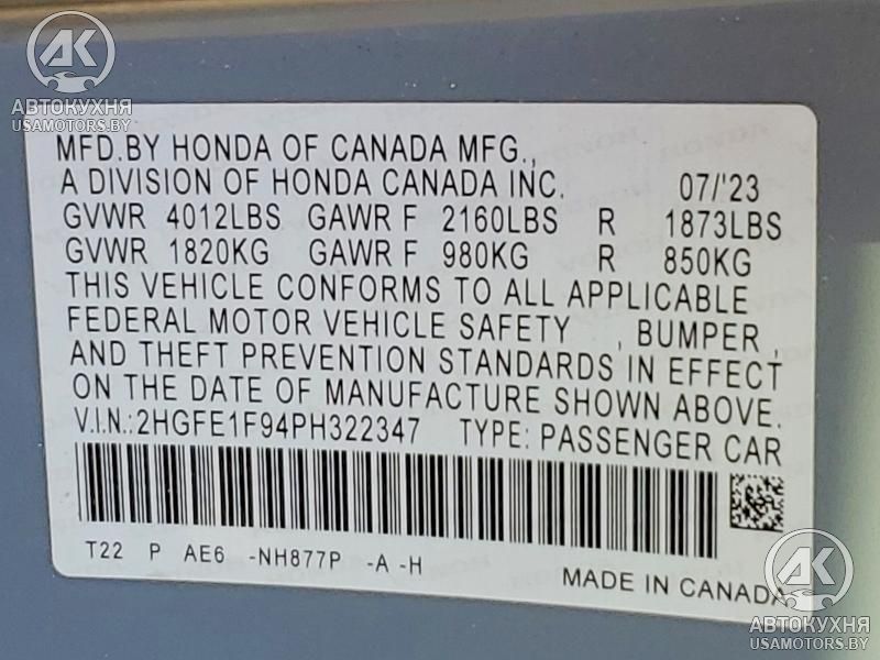 - VIN2HGFE1F94PH******