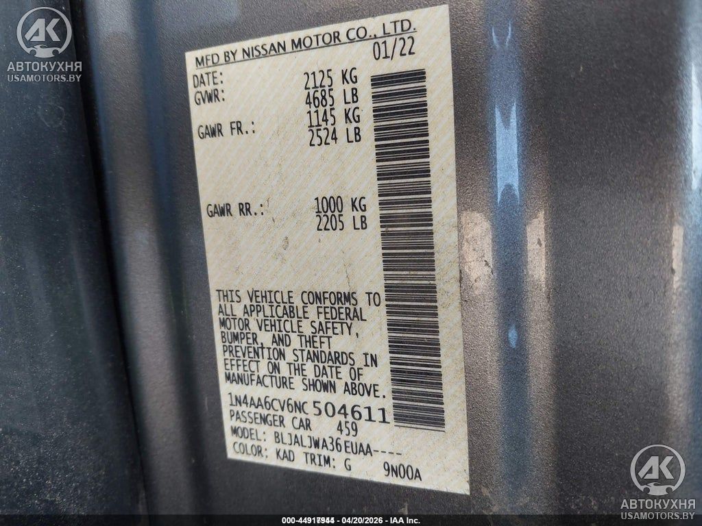 - VIN1N4AA6CV6NC504611